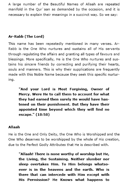 The Explanation Of The Beautiful And Perfect Names Of Allah